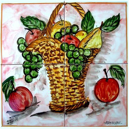 Kitchen backsplash, Fruit Basket.Tiles per pattern: 4 tilesTile dimensions inches: 12" W x12" H (0.25" thick)Tile dimensions centimeters: 30cm W x 30cm H (0.6cm