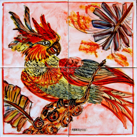 Floral, Bird, Parakeet.Tiles per pattern: 4 tilesTile dimensions inches: 12" W x 12" H (0.25" thick)Tile dimensions centimeters: 30cm W x 30cm H (0.6cm
