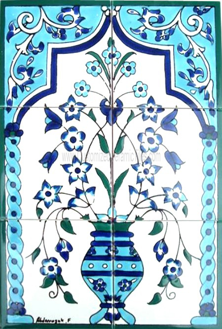Floral, Arabesque.Tiles per pattern: 6 tilesTile dimensions inches: 12" W x 18" H (0.25" thick)Tile dimensions centimeters: 30cm W x 45cm H (0.6cm