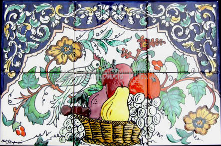 Kitchen Backsplash, Fruit Basket.Tiles per pattern: 6 tilesTile dimensions inches: 18" W x 12" H (0.25" thick)Tile dimensions centimeters: 45cm W x 30cm H (0.6cm