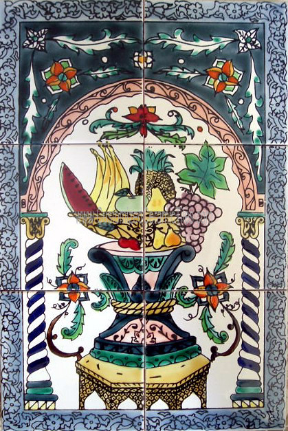 Kitchen, Backsplash, Fruit Table.Tiles per pattern: 6 tilesTile dimensions inches: 12" W x 18" H (0.25" thick)Tile dimensions centimeters: 30cm W x 45cm H (0.6cm