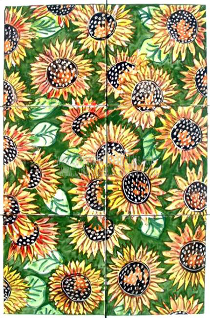 Floral, Sunflowers.Tiles per pattern: 6 tilesTile dimensions inches: 12" W x 18" H (0.25" thick)Tile dimensions centimeters: 30cm W x 45cm H (0.6cm