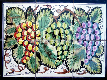 Kitchen Backsplash, Grapes.Tiles per pattern: 6 tilesTile dimensions inches: 18" W x 12" H (0.25" thick)Tile dimensions centimeters: 45cm W x 30cm H (0.6cm