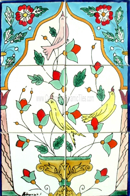 Floral, Birds.Tiles per pattern: 6 tilesTile dimensions inches: 12" W x 18" H (0.25" thick)Tile dimensions centimeters: 30cm W x 45cm H (0.6cm