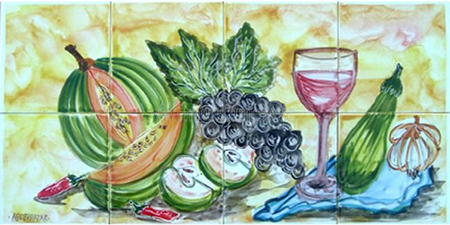Kitchen Backsplash, Fruits & Wine.Tiles per pattern: 8 tilesTile dimensions inches: 24" W x 12" H (0.25" thick)Tile dimensions centimeters: 60cm W x 30cm H (0.6cm