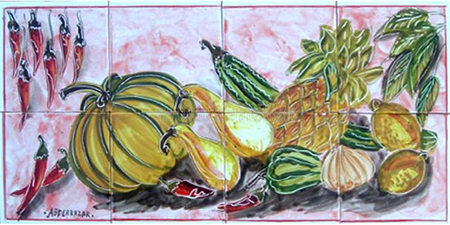 Kitchen Backsplash, Fruits.Tiles per pattern: 8 tilesTile dimensions inches: 24" W x 12" H (0.25" thick)Tile dimensions centimeters: 60cm W x 30cm H (0.6cm