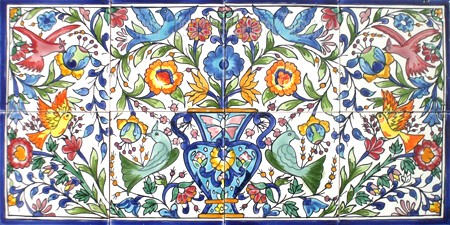 Floral, Birds.Tiles per pattern: 8 tilesTile dimensions inches: 24" W x 12" H (0.25" thick)Tile dimensions centimeters: 60cm W x 30cm H (0.6cm