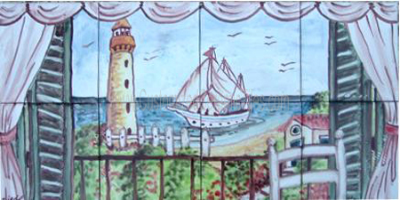 Landscape, Boat, Lighthouse.Tiles per pattern: 8 tilesTile dimensions inches: 24" W x 12" H (0.25" thick)Tile dimensions centimeters: 60cm W x 30cm H (0.6cm