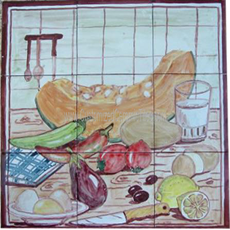 Kitchen Backsplash, Produce.Tiles per pattern: 9 tilesTile dimensions inches: 18" W x 18" H (0.25" thick)Tile dimensions centimeters: 45cm W x 45cm H (0.6cm