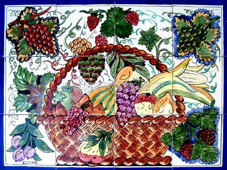 Kitchen Backsplash, Fruit Basket.Tiles per pattern: 12 tilesTile dimensions inches: 24" W x 18" H (0.25" thick)Tile dimensions centimeters: 60cm W x 45cm H (0.6cm