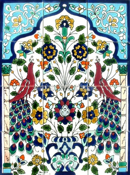Floral, Peacocks.Tiles per pattern: 12 tilesTile dimensions inches: 18" W x 24" H (0.25" thick)Tile dimensions centimeters: 45cm W x 60cm H (0.6cm