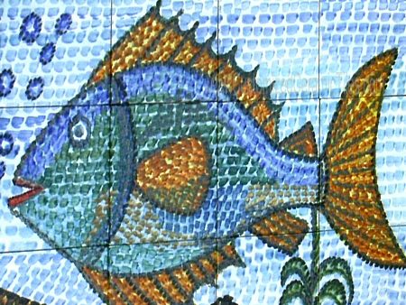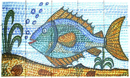 Fish.Tiles per pattern: 15 tilesTile dimensions inches: 30" W x 18" H (0.25" thick)Tile dimensions centimeters: 75cm W x 45cm H (0.6cm