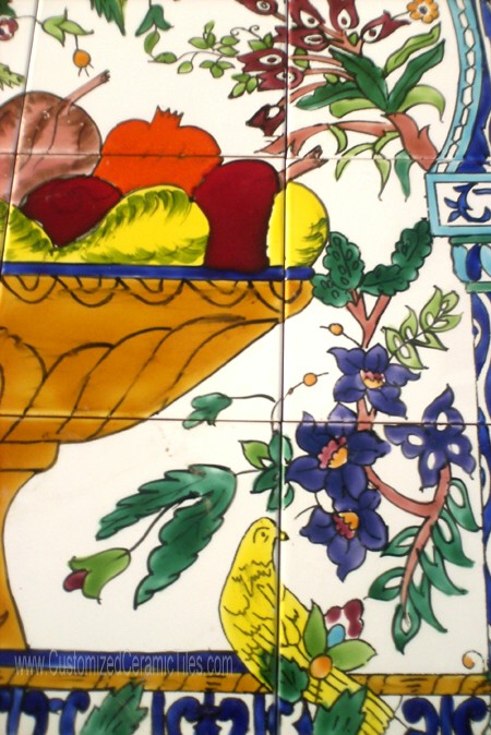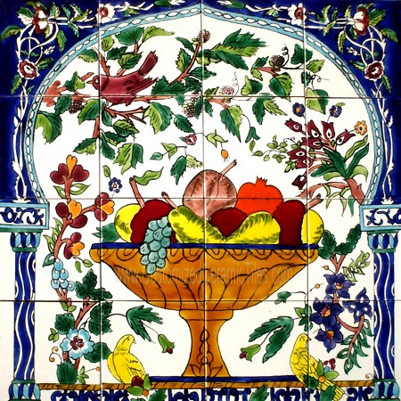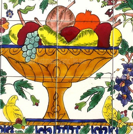 Kitchen Backsplash, Fruit Bowl.Tiles per pattern: 16 tilesTile dimensions inches: 24" W x 24" H (0.25" thick)Tile dimensions centimeters: 60cm W x 60cm H (0.6cm
