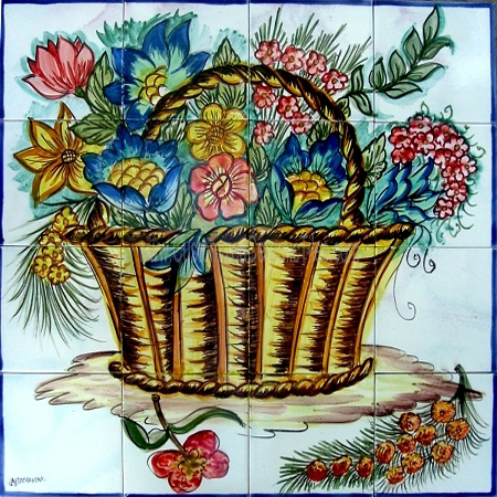 Floral, Flowers Basket.Tiles per pattern: 16 tilesTile dimensions inches: 24" W x 24" H (0.25" thick)Tile dimensions centimeters: 60cm W x 60cm H (0.6cm
