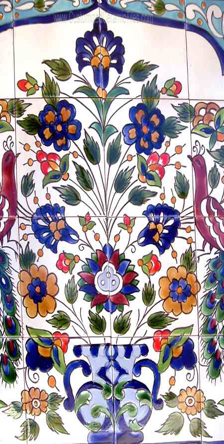 Floral, Peacocks.Tiles per pattern: 16 tilesTile dimensions inches: 24" W x 24" H (0.25" thick)Tile dimensions centimeters: 60cm W x 60cm H (0.6cm