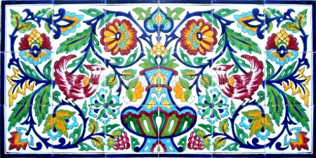 Arabesque, Rooster.Tiles per pattern: 18 tilesTile dimensions inches: 36" W x 18" H (0.25" thick)Tile dimensions centimeters: 90cm W x 45cm H (0.6cm