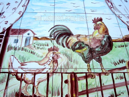 Landscape, Rooster, French Country.Tiles per pattern: 20 tilesTile dimensions inches: 30" W x 24" H (0.25" thick)Tile dimensions centimeters: 75cm W x 60cm H (0.6cm