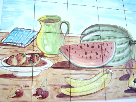 Kitchen Backsplash, Water Melon.Tiles per pattern: 20 tilesTile dimensions inches: 30" W x 24" H (0.25" thick)Tile dimensions centimeters: 75cm W x 60cm H (0.6cm