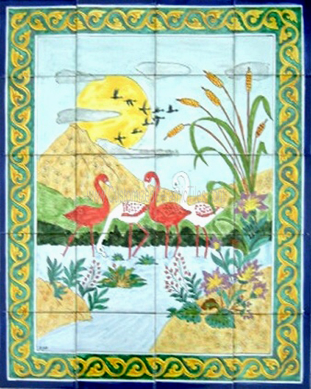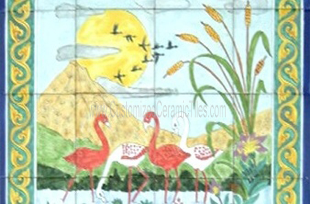 Landscape, Pelicans.Tiles per pattern: 20 tilesTile dimensions inches: 24" W x 30" H (0.25" thick)Tile dimensions centimeters: 60cm W x 75cm H (0.6cm