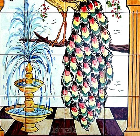 Landscape, Peacock.Tiles per pattern: 20 tilesTile dimensions inches: 24" W x 30" H (0.25" thick)Tile dimensions centimeters: 60cm W x 75cm H (0.6cm