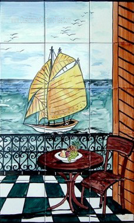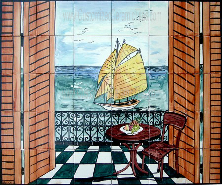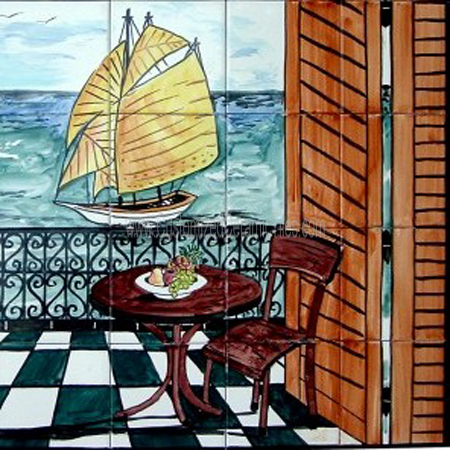 Landscape, Boat.Tiles per pattern: 30 tilesTile dimensions inches: 36" W x 30" H (0.25" thick)Tile dimensions centimeters: 90cm W x 75cm H (0.6cm
