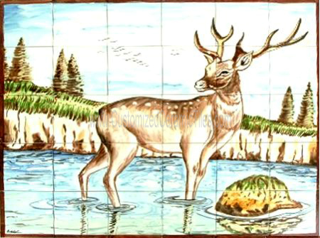 Landscape, Deer.Tiles per pattern: 30 tilesTile dimensions inches: 36" W x 30" H (0.25" thick)Tile dimensions centimeters: 90cm W x 75cm H (0.6cm
