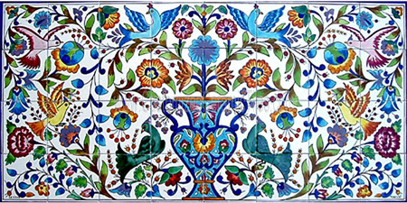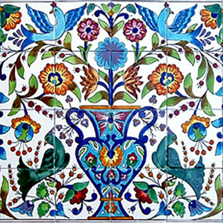 Floral, Birds.Tiles per pattern: 32 tilesTile dimensions inches: 48" W x 24" H (0.25" thick)Tile dimensions centimeters: 120cm W x 60cm H (0.6cm