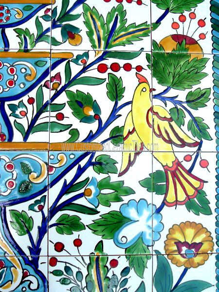 Floral, Birds.Tiles per pattern: 35 tilesTile dimensions inches: 30" W x 42" H (0.25" thick)Tile dimensions centimeters: 75cm W x 105cm H (0.6cm