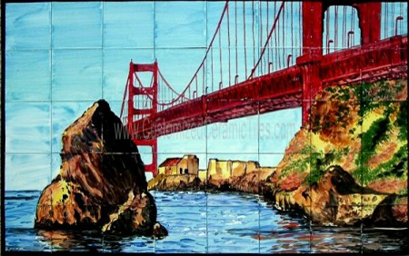 Landscape, San Francisco, Golden Gate Bridge.Tiles per pattern: 40 tilesTile dimensions inches: 48" W x 30" H (0.25" thick)Tile dimensions centimeters: 120cm W x 75cm H (0.6cm