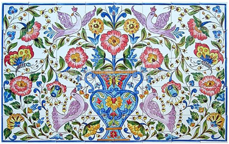 Floral, Birds.Tiles per pattern: 40 tilesTile dimensions inches: 48" W x 30" H (0.25" thick)Tile dimensions centimeters: 120cm W x 75cm H (0.6cm