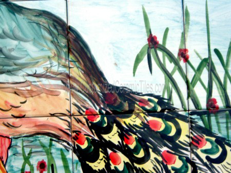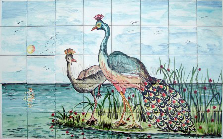 Landscape, Peacocks.Tiles per pattern: 40 tilesTile dimensions inches: 48" W x 30" H (0.25" thick)Tile dimensions centimeters: 120cm W x 75cm H (0.6cm