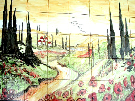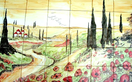Landscape, Italian Village, Landscape.Tiles per pattern: 40 tilesTile dimensions inches: 48" W x 30" H (0.25" thick)Tile dimensions centimeters: 120cm W x 75cm H (0.6cm