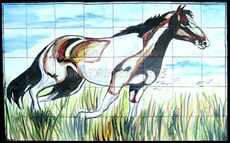Landscape, Horse.Tiles per pattern: 40 tilesTile dimensions inches: 48" W x 30" H (0.25" thick)Tile dimensions centimeters: 120cm W x 75cm H (0.6cm