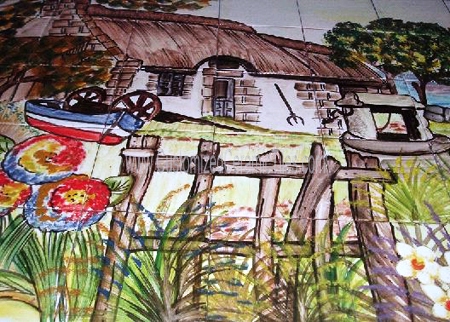 Landscape, Farm.Tiles per pattern: 50 tilesTile dimensions inches: 60" W x 30" H (0.25" thick)Tile dimensions centimeters: 150cm W x 75cm H (0.6cm