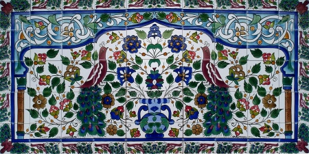 Floral, Peacocks.Tiles per pattern: 50 tilesTile dimensions inches: 60" W x 30" H (0.25" thick)Tile dimensions centimeters: 150cm W x 75cm H (0.6cm