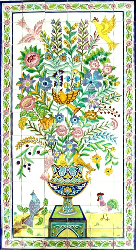 Floral, Birds.Tiles per pattern: 66 tilesTile dimensions inches: 36" W x 66" H (0.25" thick)Tile dimensions centimeters: 90cm W x 165cm H (0.6cm