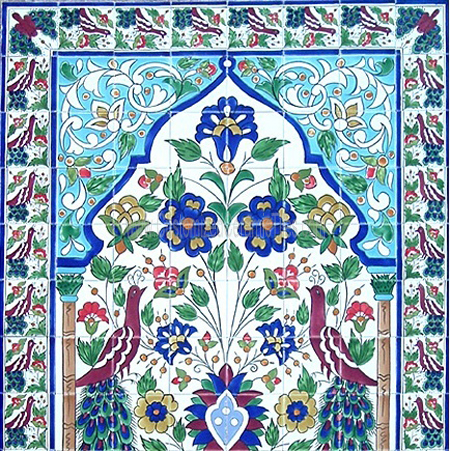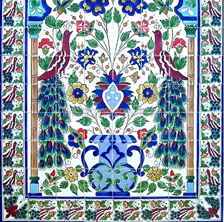 Floral, Peacocks.Tiles per pattern: 96 tilesTile dimensions inches: 48" W x 72" H (0.25" thick)Tile dimensions centimeters: 120cm W x 180cm H (0.6cm