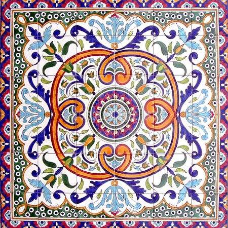 Medallion.Tiles per pattern: 36 tilesTile dimensions inches: 36" W x 36" H (0.25" thick)Tile dimensions centimeters: 90cm W x 90cm H (0.6cm